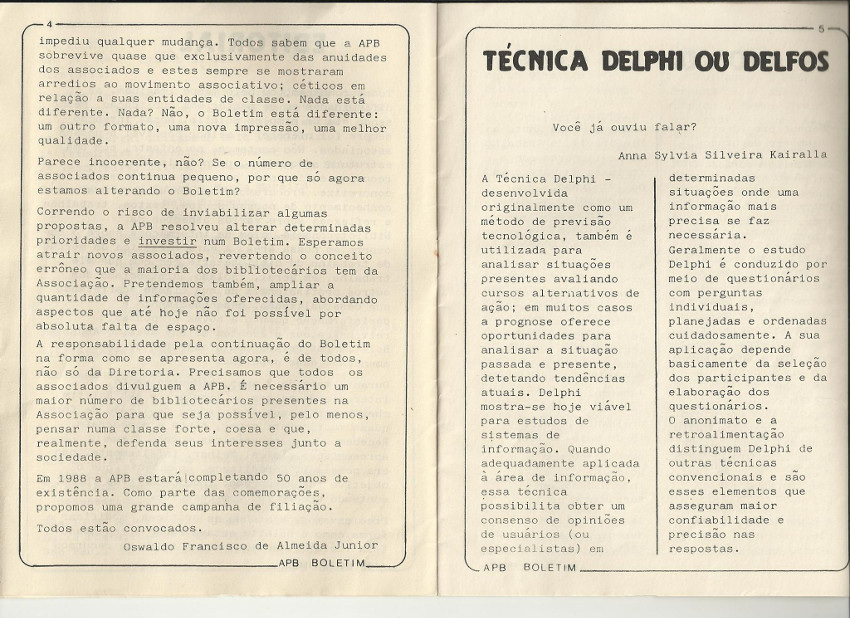 Boletim da Associação Paulista de Bibliotecários - APB - Agosto de 1987 (Ano 4, n.2). O Boletim possui 16 páginas. Nesta postagem constam as páginas de 01 à 05. As outras páginas estarão nas posytagens seguintes. O Boletim era mimeografado, recortado e grampeado.