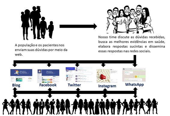 - Paciente ou família do paciente ou pessoa da população nos envia uma questão sobre saúde pela web (http://www.drrisadinha.org.br/ e demais redes sociais). Também consideramos dúvidas sobre saúde por meio de monitoramento das redes sociais, assim como observamos os dados epidemiológicos da nossa população para verificar as condições de saúde mais frequentes. A quantidade de questões que chegam ao projeto diariamente varia muito.