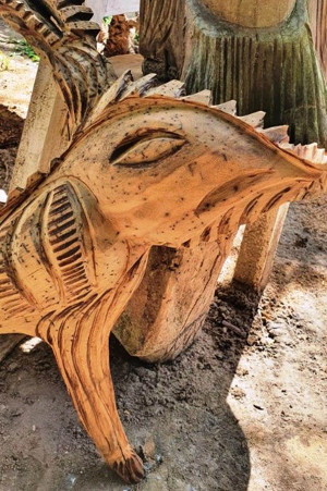 Leno não teve escola formal para aprender a ler e muito menos para esculpir. Ele é um autodidata. Aprendeu no trabalho diário com cepa de coqueiro, madeira de reciclagem, galhos caídos e raízes de árvores, onde empresta sua habilidade como escultor e sensibilidade como artista para dar vida às suas obras.