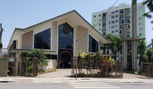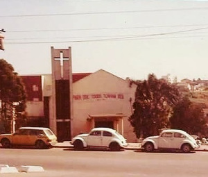 Prédio original da Paróquia Nossa Senhora de Fátima, com campanário, onde o padre Geraldo Mauzeroll sofreu atentado em 1971. |