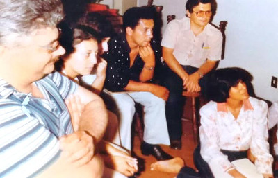 Paulo Freire com o grupo da Vila Fátima, em um dos quatro encontros de formação de educadores populares que ocorriam uma vez por mês em seu apartamento, no bairro das Perdizes, na cidade de São Paulo.