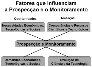 Os fatores que influenciam as atividades de prospecção e monitoramento são as oportunidades e ameaças relacionadas ao negócio, bem como a necessidade de planejar as ações a curto, médio e longo prazo (Figura 1):