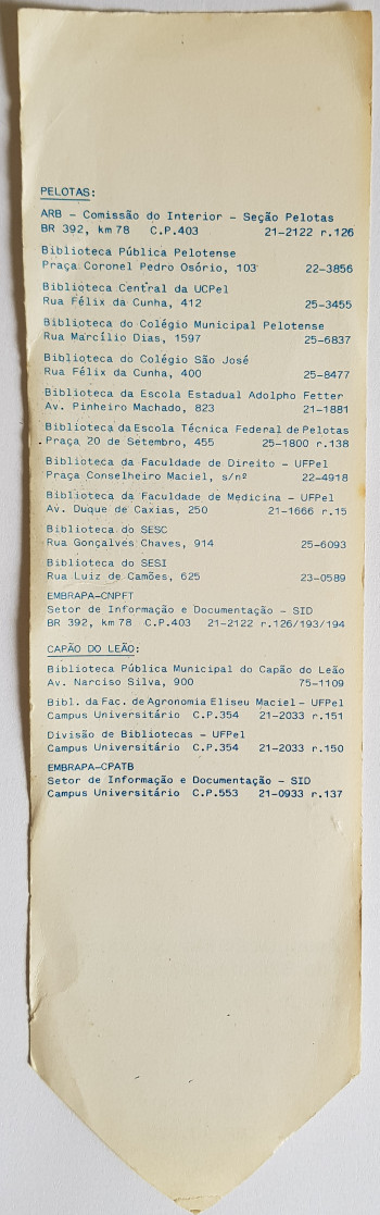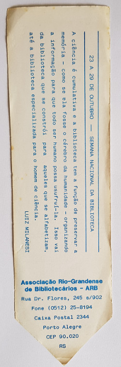 Marcador de livro - ARB - Associação Riograndense de Bibliotecários - Regional Pelotas - data desconhecida