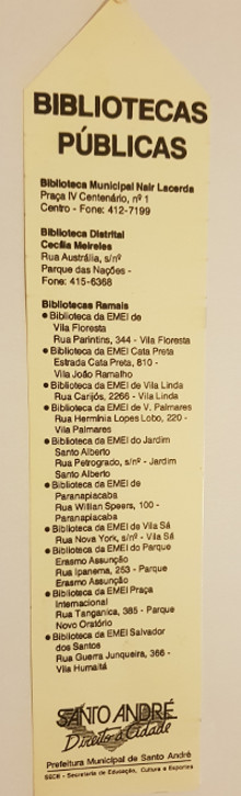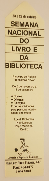 Marcador de página - Prefeitura de Santo André - SP - Bibliotecas - Semana do Livro e da Biblioteca. Ano desconhecido.