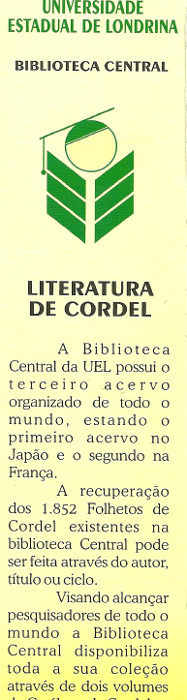 MArcador de página - Biblioteca Central da Universidade de Londrina - Biblioteca de Cordel