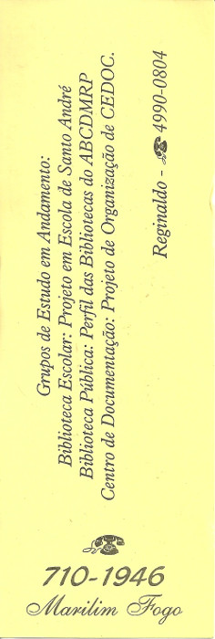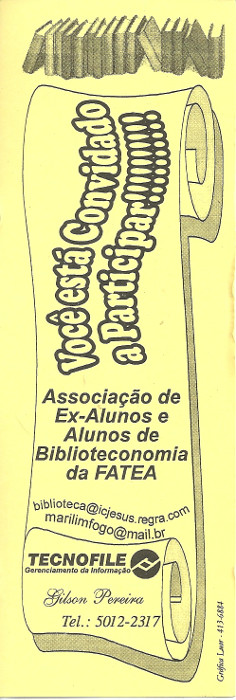 Marcador de página - Divulgação da Associação de Ex-alunos da Fatea - Curso de Biblioteconomia - Santo André - Data desconhecida