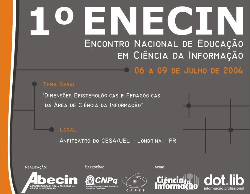 Cartaz do I ENECIN - Encontro Nacional de Educação em Ciência da Informação. Realizado em 2004, em Londrina - PR.