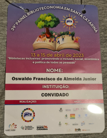 Crachá utilizado no 39 Painel de Biblioteconomia em santa Catarina, promovido e realizado pela ACB em abril de 2023