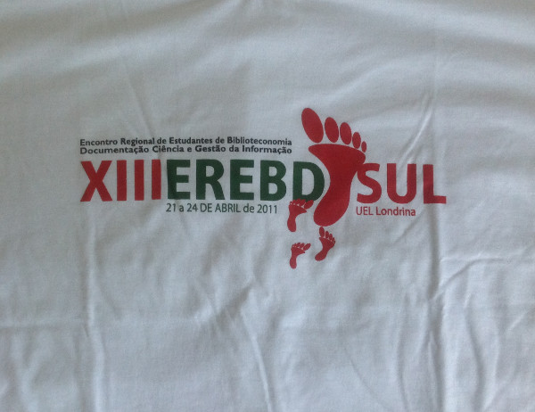 Camiseta distribuída durante o XIII EREBD Sul, realzado na Universidade Estadual de Londrina, de 21 a 24 de abril de 2011.