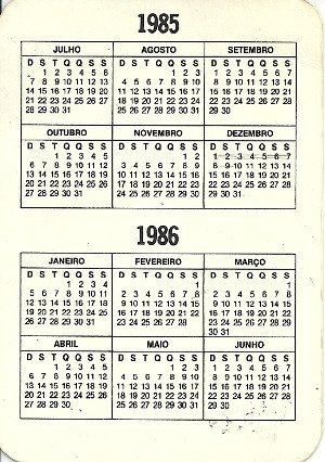 Calendário de bolso - Associação Riograndense de Bibliotecários - 1985