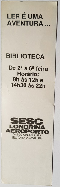 Marcador de livro - Biblioteca SESC - Aeroporto - Londrina - Sem data conhecida