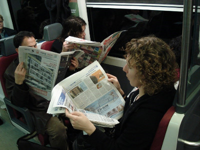 Figura 1 – Catalães lendo jornais no trem, Barcelona – Catalunha, Espanha