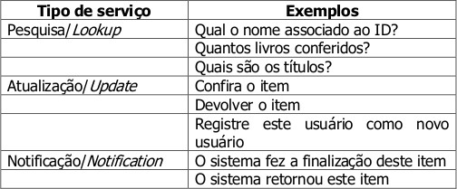 - Notificação: serviço que informa a outro sistema que uma ação foi executada.