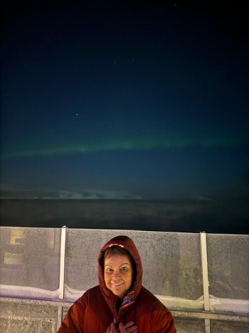 Grupo de 22 pessoas de diferentes Estados, incluindo um dos guias portugueses e todos com o mesmo intuito: caça à aurora boreal. Dia após dia, o tema ia e vinha. Não desaparecia jamais. Como mulher caprichosa e geniosa, nenhuma previsão ou melhor, antevisões sempre muito incertas. Ao amanhecer, indagação aos guias – é hoje? E nada... Por fim, no dia 29 de dezembro, na charmosa cidade da Lapônia norueguesa, Kirkenes, à noite, por cerca de 20:00 horas, um corre-corre em meio ao gelo, um cai-cai de pessoas, incluindo gente de nosso grupo, coeso e risonho, em busca da aurora boreal.