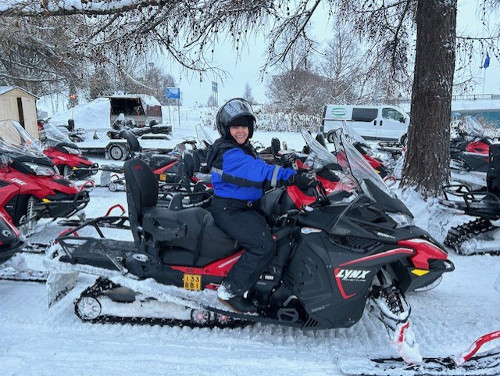 Agora, é experienciar a delícia de pilotar o snowmobile ou moto de neve, veículo que mescla motocicleta e carro, com o fim de enfrentar caminhos que parecem brigar com a majestosa neve. Acalentamos o medo, até porque parece e é bastante seguro: tração traseira por esteira com cravas para maior estabilidade e pás na parte dianteira, além da supervisão dos empregados do local. E lá vamos nós... Logo mais, teremos a Ceia de Natal!