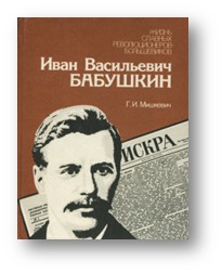 | Iván Vasílievich Bábushkin. Pasta del libro de Grigori Iósifóvich Mishkévich.(Leningrado: Lenizdat, 1983) |
